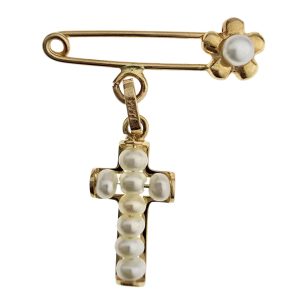 Pin con Cruz Perlitas 14K