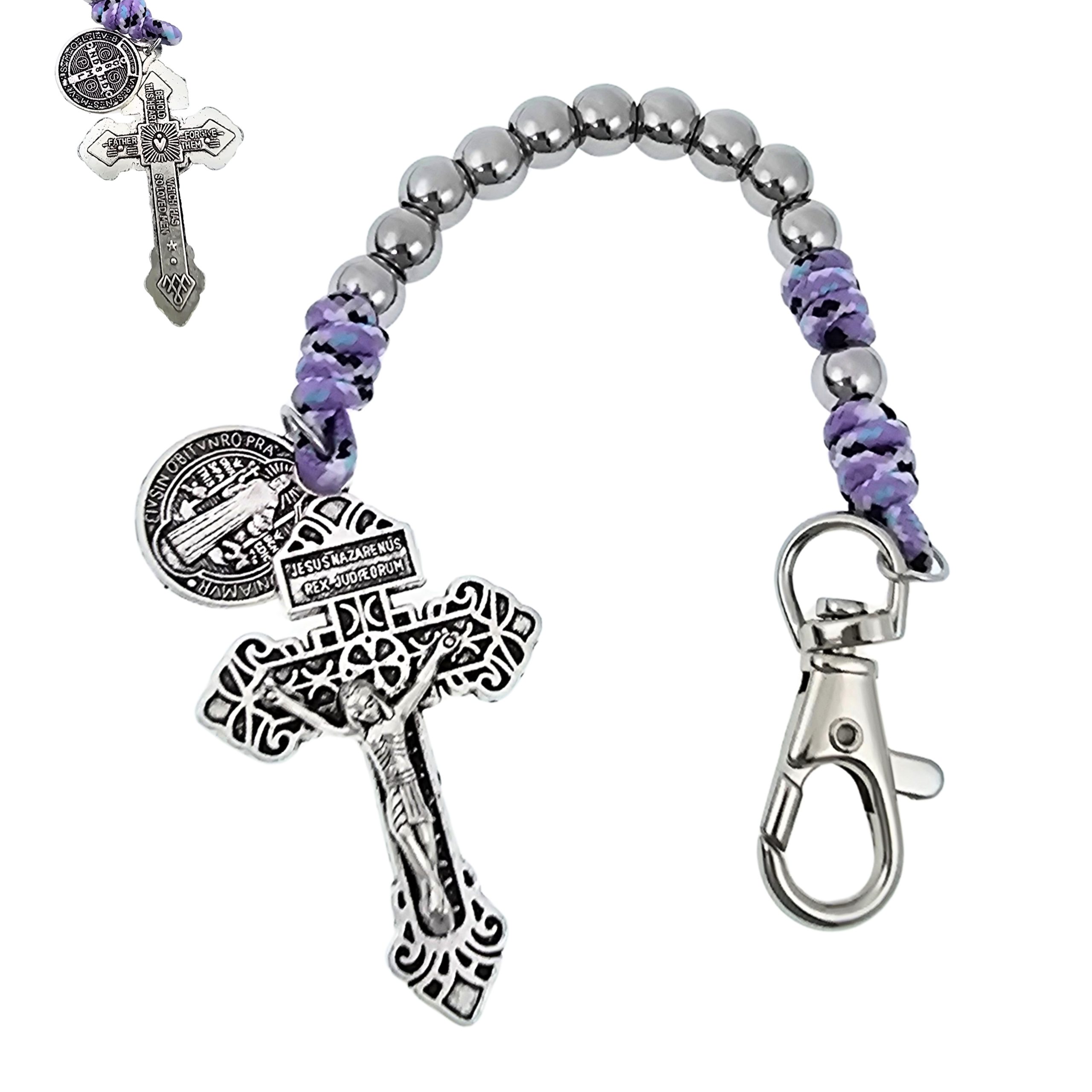 Cuentas en Inox 8mmCrucifijo del Perdón 5.5cmMedalla de San Benito 0.8cm