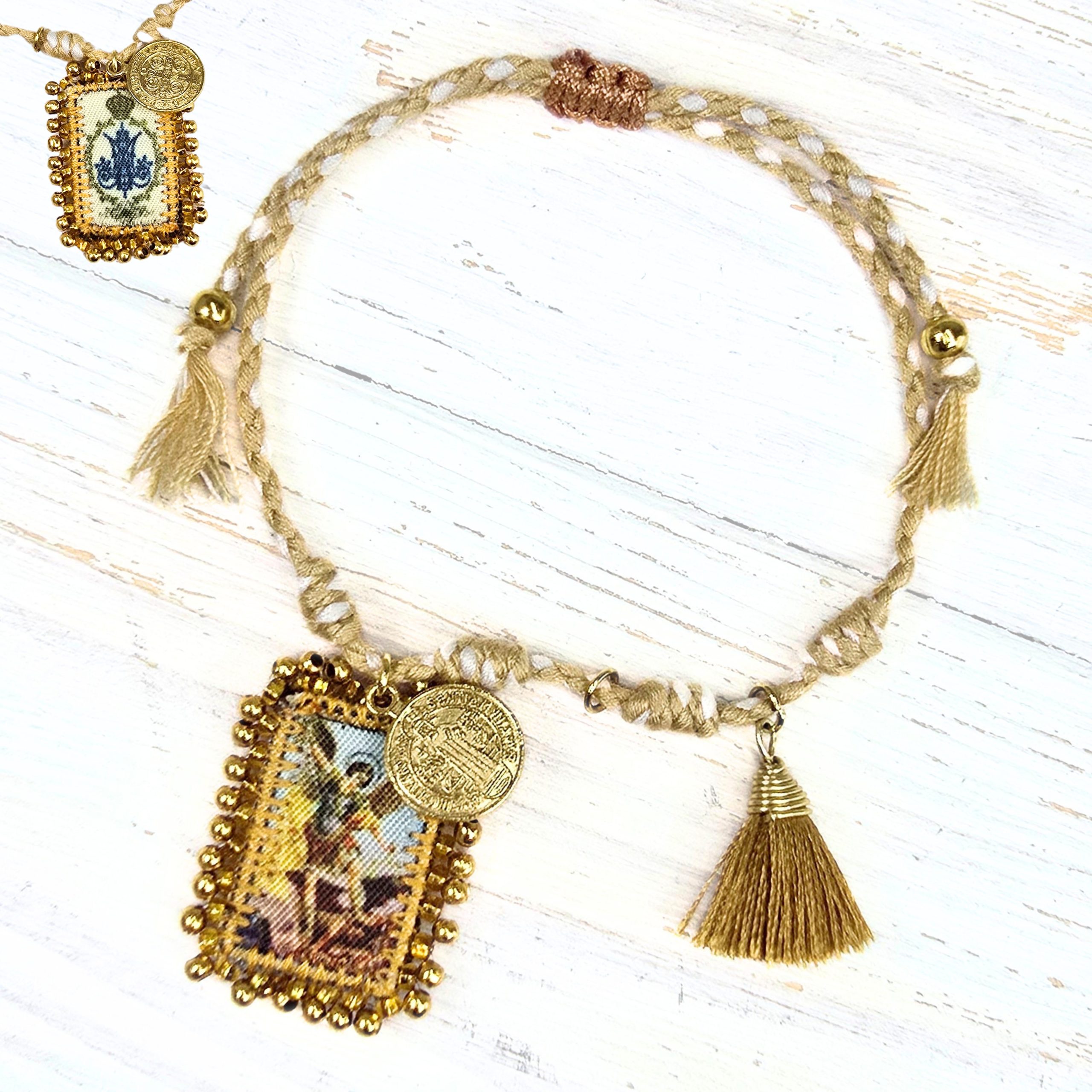 Medalla San Benito,11mmEscapulario Bordado, 2x3cm, de San Miguel y Emblema Mariano