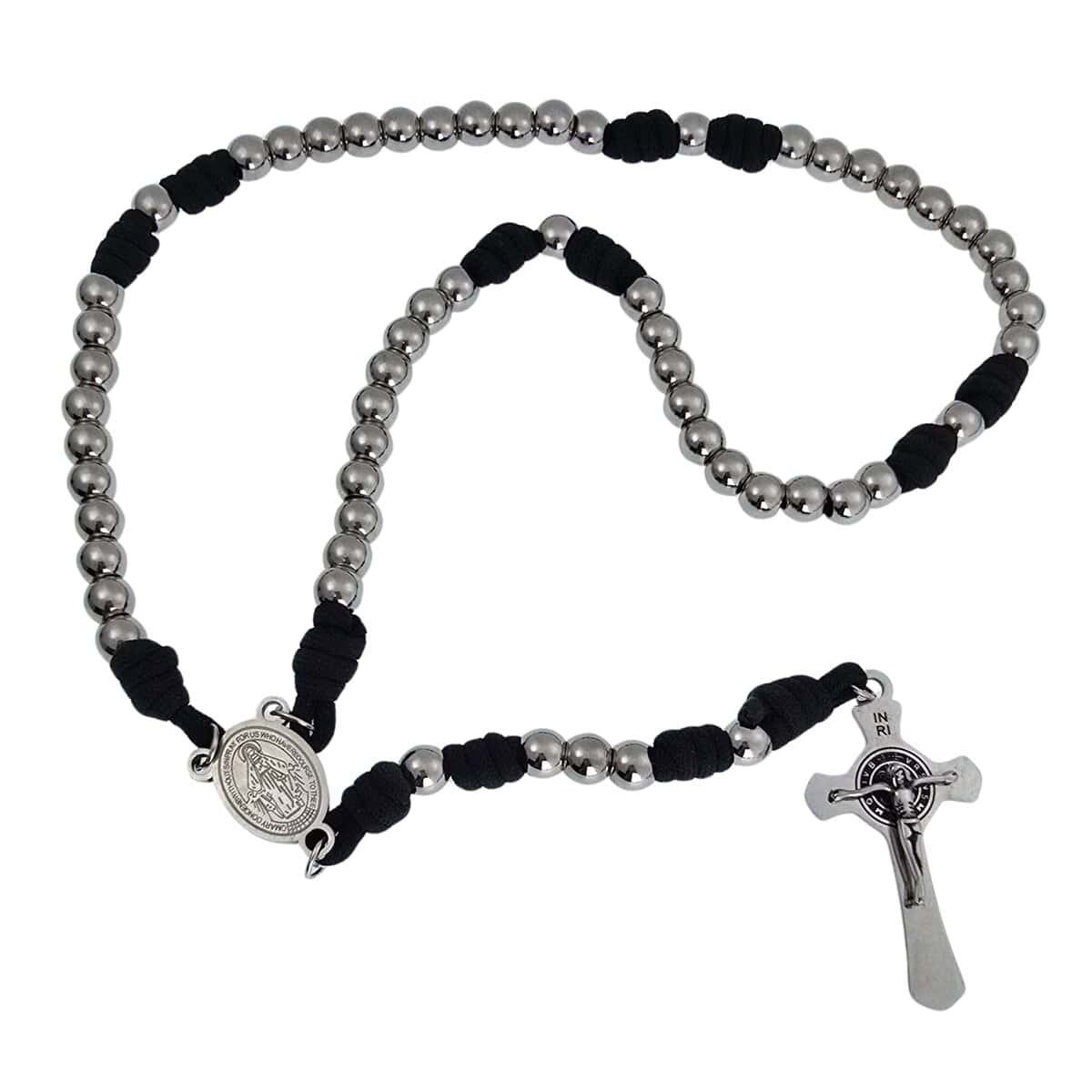 Cuentas de Acero Inoxidable, 10mmCrucifijo de San Benito de Acero Inoxidable, 5×2.8cm